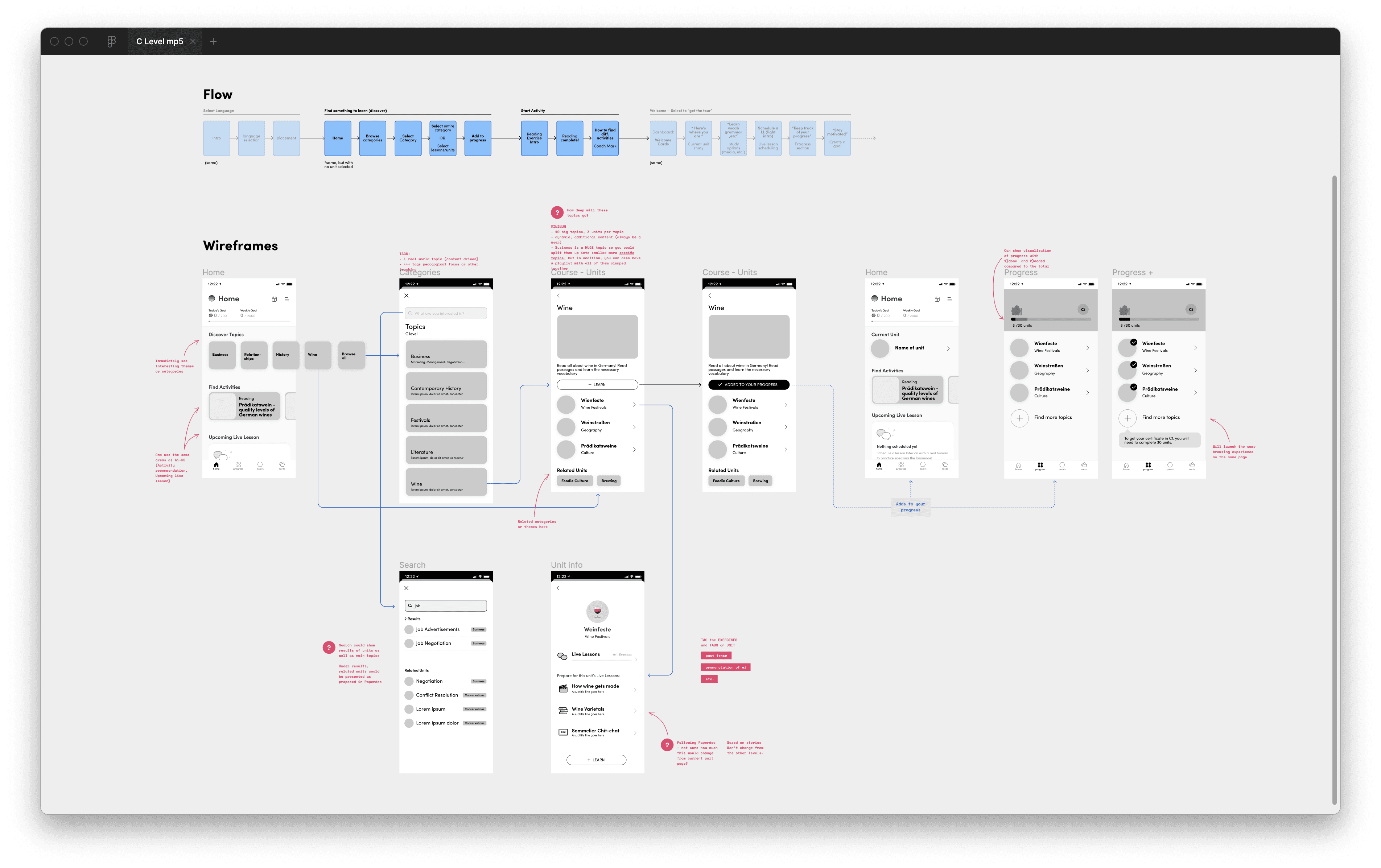 Wireframing happy-paths and core interaction models around course creation and topic selection
