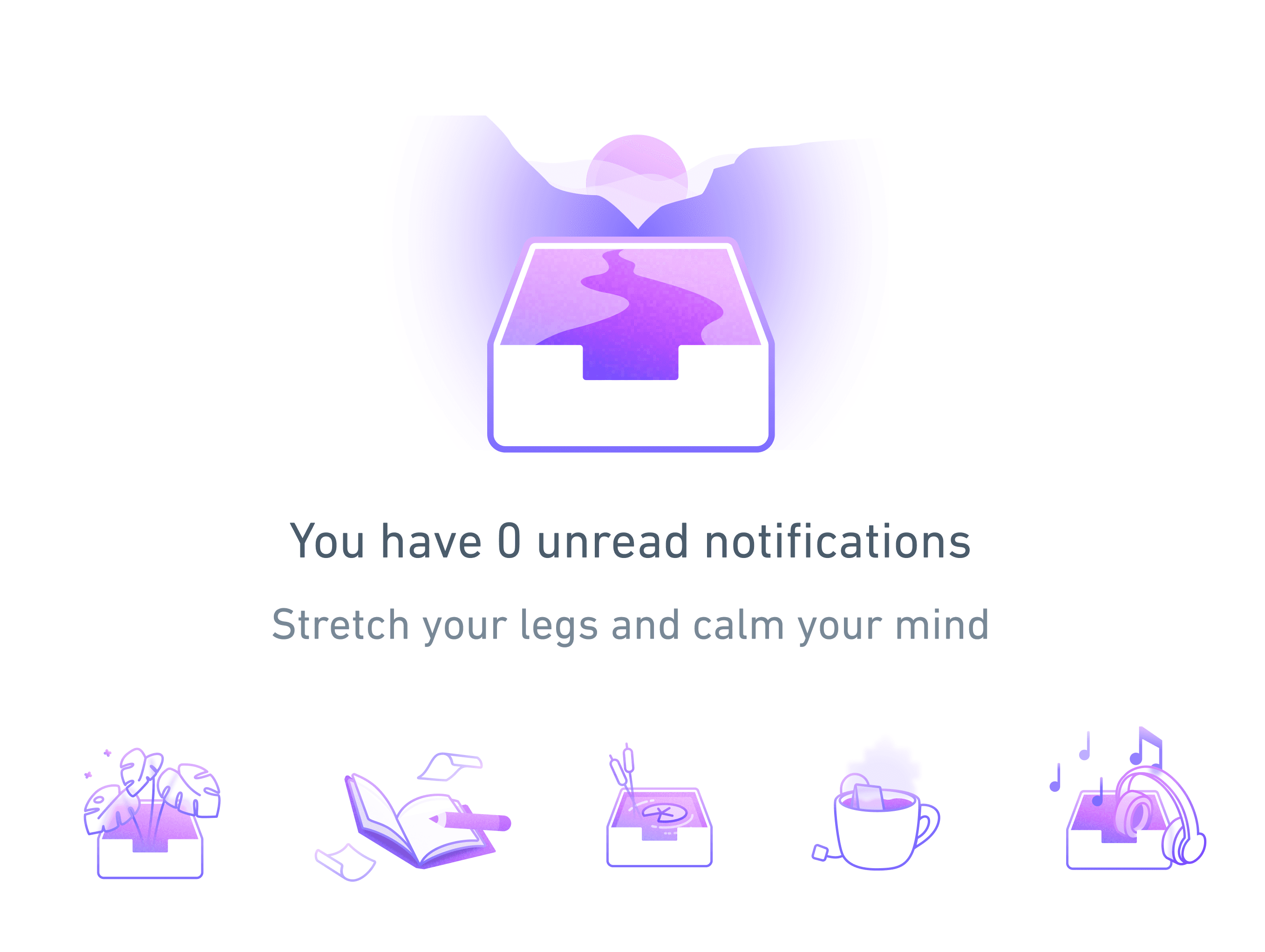 There was an opportunity to create some whimsy and exemplify a feeling of calm. I created illustrations that were inspired from our new website branding and initiatives for creating calm and focus in the app.